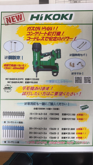 こんにちは🤗本日、ご紹介するのは!ハイコーキの充電式コンクリート釘打ち機です😊メーカーさんと試し打ちしてきました😊お問い合わせお待ちしてます🤗
